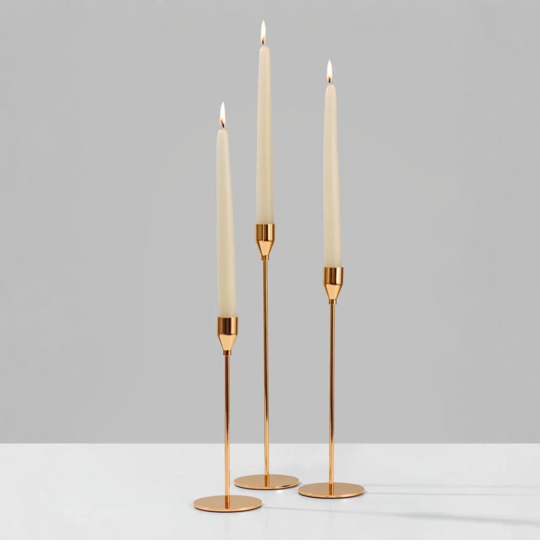 Тройной набор декоративных свечей разной длины, позволяющих варьировать освещение и придать оригинальности дизайну помещения.
