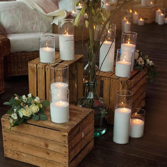 Прекрасно дополнит любой декор: установите свечи рядом с главным столом молодых, украсьте ими зону фотографий или разместите там, где гости смогут насладиться тихими разговорами и отдыхом.
